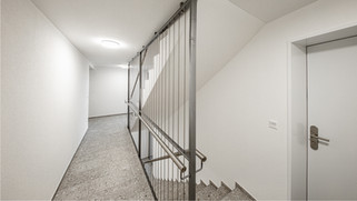 Das Gerüst, das den Zugang abgesichert hat, wurde abgebaut, ein kleiner Schritt aber ein sichtbares Zeichen dafür, dass es dem Ende zugeht. Die frisch gestrichenen Wände lassen das Gebäude sauber und schön wirken. Die Garagen bekommen den letzten Feinschliff.